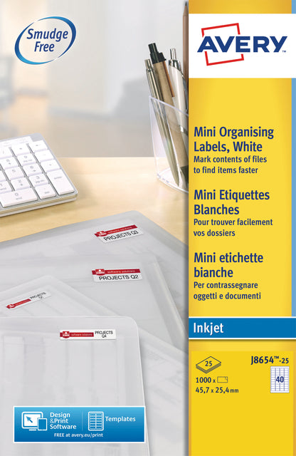 Étiquette avery j8654-25 45,7x25,4mm blanc 1000 pièces