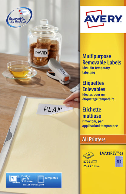 Etiquette Avery L4731REV-25 25.4x10mm amovible blanche 4725 pièces