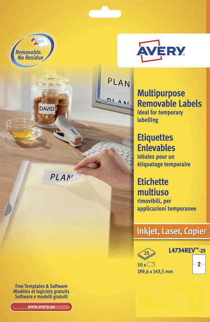 Étiquette Avery L4734REV 199.3x143.5mm amovible blanc 50 pièces