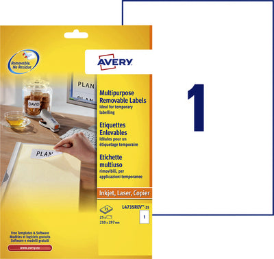 Étiquette Avery L4735REV-25 210x297mm A4 amovible blanc 25 pièces