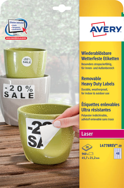 Etiquette Avery L4778REV 45.7x21.2mm blanc 960 pièces
