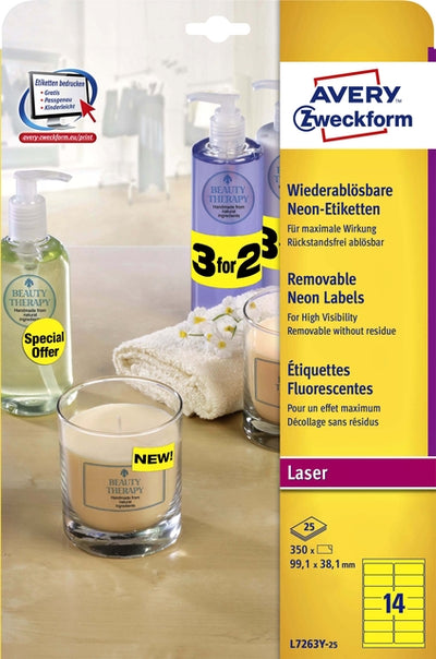 Étiquette Avery L7263Y-25 99.1x38.1mm jaune fluo 350 pièces