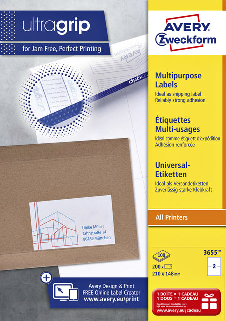 Étiquette Avery Zweckform 3655 210x148mm A5 blanc 200 pièces