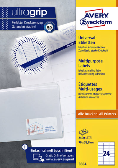 Étiquette Avery Zweckform 3664 70x33.8mm blanc 2400 pièces