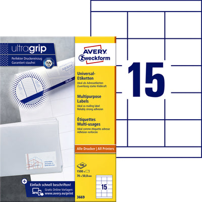 Etiquette Avery Zweckform 3669 70x50.8mm blanc 1500 pièces