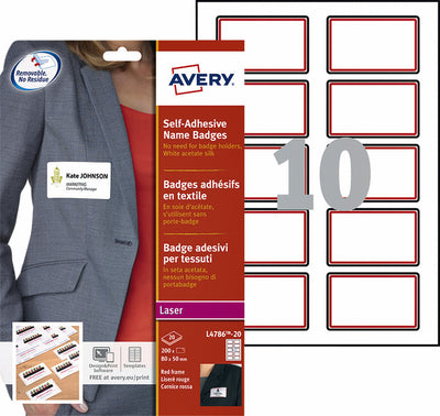 Étiquette porte-nom Avery L4786-20 80x50mm cadre rouge 200 pièces