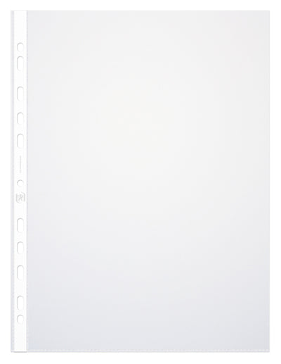 Voor ft A4. Uit glasheldere PP. Versterkte perforatiestrip. 11-gaatsperforatie. Pak van 100 stuks.