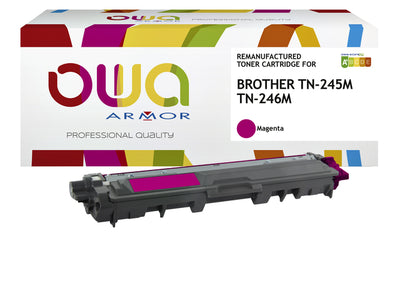 Dit voordelige alternatief van OWA, de TN-245M; TN-246M, is speciaal ontworpen voor Brother printers. Met deze cartridge kun je op een duurzame manier printen zonder in te leveren op kwaliteit. De documenten die je met deze magenta cartridge print, hebben een vergelijkbare kwaliteit als het origineel. De TN-245M; TN-246M cartridge heeft een capaciteit van maar liefst 2200 paginas, waardoor je lang kunt blijven printen zonder dat je de cartridge hoeft te vervangen. Wil je nog meer printen? Dan kun je kijken in ons uitgebreide alternatieven aanbod. Hier kun je zoeken op het type of model van de cartridge of je kunt contact opnemen met onze verkoopafdeling voor meer informatie.