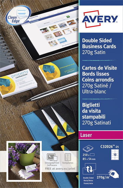 Carte de visite Avery C32026-25 recto-verso 270gr 250 pièces