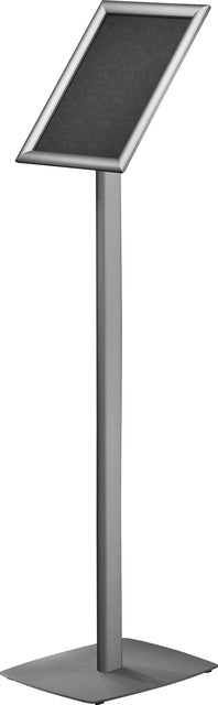 Klassiek design informatiestandaard inclusief A4 formaat verstekhoek kliklijst met Easy-Click systeem voor een snelle, eenvoudige en representatieve presentatie. Kliklijst van geanodiseerd aluminium met kunststof achterzijde. De heldere transparante voorzetfolie beschermd de poster tegen vuil en vocht. Standaard is eenvoudig te monteren. De kliklijst kan zowel staand als liggend worden geplaatst. Voetstuk 320x245mm van 4mm staal. Hoogte staander 900mm. Kleur grijs. Product