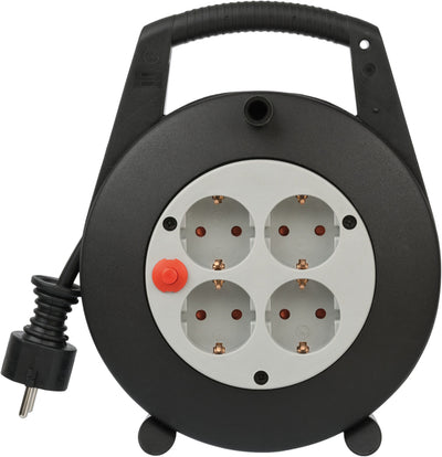 De Vario Line kabelhaspel is een 4-voudige stroomverdeler in de kleuren zwart en lichtgrijs. Deze kabelhaspel heeft een kabellengte van 5 meter en is voorzien van een H05VV-F 3G1,5 kabel. De behuizing van de kabelhaspel is gemaakt van speciaal kunststof, wat zorgt voor een stabiele en duurzame constructie. Het ergonomische handvat maakt het gemakkelijk om de kabelhaspel te dragen en te verplaatsen. Dankzij de stabiele dubbelvoet staat de kabelhaspel stevig op de grond.