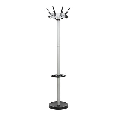 - Hoogwaardige, staande kapstok van staal - Stabiel en elegant design - Zuil van robuust staal, stevig verankerd in zware betonvoet - Glanzende voet met mat geëbrodeerde plekken - Krasbestendig tegen paraplu-punten - 4 extra haken aan de zuil voor lichte kledingstukken of accessoires - 4 extra haken aan de paraplubak voor opvouwbare paraplus - Geschikt voor plekken met veel bezoekers: openbare plaatsen, ingangen, kantoorruimtes - Diameter zuil: 5 cm - 32 kunststof haken van onbreekbaar ABS (8 mutshaken, 16 jashaken, 4 extra haken aan de zuil en aan de paraplubak) - Draaibare kroon met diameter van 46 cm - Inclusief parapluhouder met diameter van 27 cm (voor maximaal 8 paraplus en 4 zakparaplus) - Voet met diameter van 36,5 cm en gewicht van 6 kg - Kleuren: zwart RAL 9004, zilver gelijkaardig aan RAL 9006 - Eenvoudige montage - Recyclebaar: uit elkaar halen en weer terugbrengen in de grondstof-kringloop