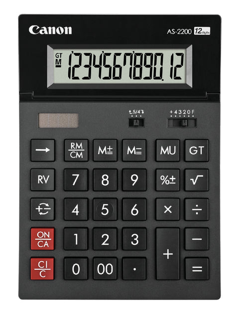 - 12-cijferige bureaurekenmachine - Stijlvolle gebogen behuizing - Groot instelbaar opstaand scherm - Gemaakt van gerecycled materiaal uit Canon kopieerapparaten - Dubbele voeding: zonne-energie en verwisselbare batterij (LR44) - Selectie van decimalen en afronding - Automatische uitschakeling - Afmetingen: 198x140x34mm
