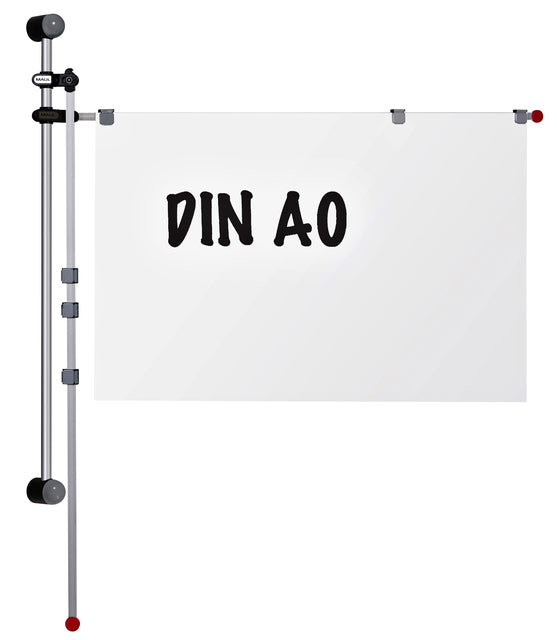 - Verticaal 1m lange, zilver geëloxeerde aluminium buis - 2 Aluminium zwenkarmen A0 (132cm) met elk 3 verschuifbare magneetclips - Arm met geïntegreerde rem om hoogte naar wens in te stellen - Kan worden uitgebreid tot in totaal 8 armen