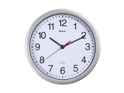 De MAUL Run is een instapmodel wandklok met een moderne en elegante uitstraling. Deze klok is perfect voor gebruik in kantoren, spreek- en wachtkamers, ontvangsthallen, werkplaatsen of thuis. Met zijn zilverkleurige rand van hoogwaardig kunststof en een witte wijzerplaat met Arabische cijfers, heeft deze klok een tijdloos ontwerp dat in elke omgeving past. De klok is goed af te lezen, zelfs vanaf een grotere afstand, dankzij de cijferhoogte van 23 mm. De wandklok is afgewerkt met mineraalglas voor de wijzerplaat en werkt op één 1,5 V AA batterij, die bijgesloten is. De eenvoudige montage wordt mogelijk gemaakt door het ophangoog.