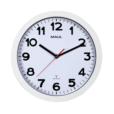 De MAUL Step, 30cm RC, is een populair model binnen onze serie wandklokken. Deze wandklok heeft een aantrekkelijk en strak design met een witte achterplaat en wit frame. Het moderne randontwerp is gemaakt van hoogwaardig wit kunststof en de cijfers zijn duidelijk leesbaar. Deze stijlvolle wandklok is geschikt voor zowel kantoren als thuisgebruik. De wijzerplaat is afgewerkt met helder mineraalglas en de klok werkt op één 1,5 V AA batterij, die bijgesloten is. De wandklok kan eenvoudig worden gemonteerd met behulp van het ophangoog. Dit universele model kan gebruikt worden in kantoren, spreek- en wachtkamers, ontvangsthallen, werkplaatsen of thuis. De tijd van de klok wordt automatisch gesynchroniseerd met het signaal van de tijdseinzender DCF77 in Frankfurt. Let op: bij geologische situaties of metalen constructies in gebouwen kan er signaalinterferentie optreden en is een handmatige aanpassing noodzakelijk. Het signaalbereik van de zender is ongeveer 1500 km vanaf de zenderlocatie. Deze robuuste wandklok heeft een elegant wit frame van slagvast kunststof. Kies bewust de wandklok die het beste bij uw praktijksituatie past.